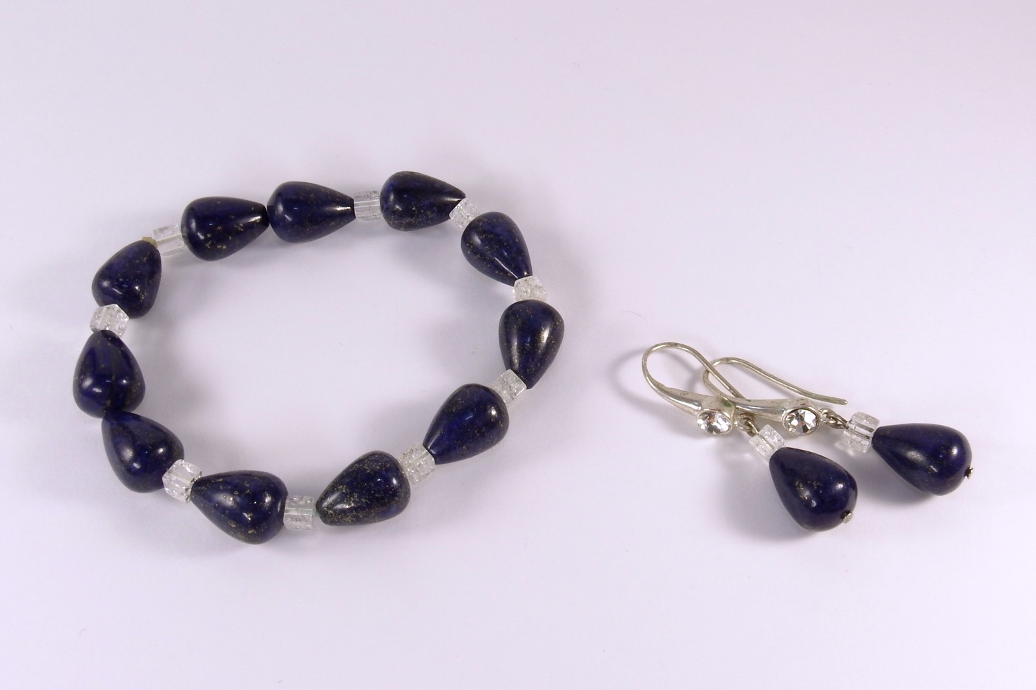 Natūralaus mineralo Lazurit apyrankė ir auskarai